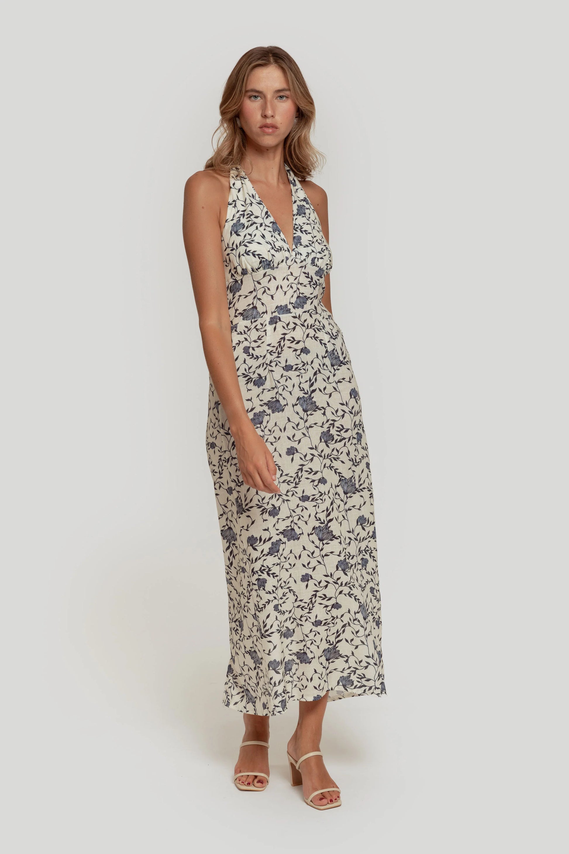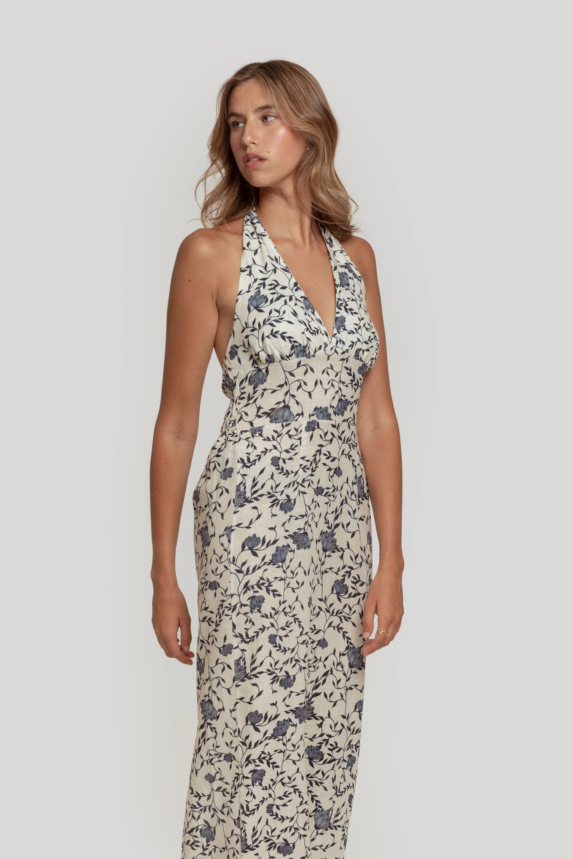 Fresco e sofisticato, questo abito lungo in tessuto misto lino è perfetto per la stagione estiva. Il design lineare è valorizzato da una stampa floreale delicata e uno scollo all’americana che lascia le spalle scoperte, donando eleganza e femminilità. Il dettaglio schiena nuda e il retro elastico assicurano comfort e una vestibilità impeccabile. Completano il look l’orlo con aperture laterali, per un tocco leggero e dinamico.