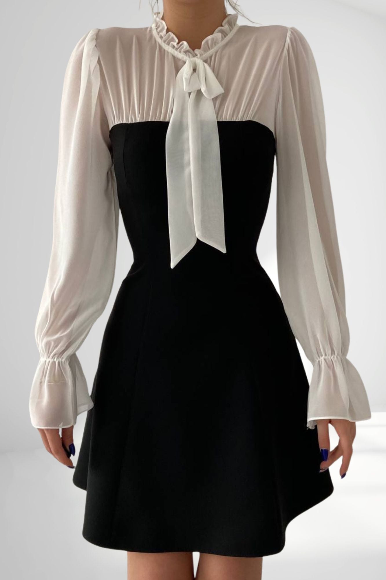 - Finta Camicia Bianca: L'originale dettaglio della finta camicia bianca con fiocco al collo dona un tocco di classe e originalità, rendendo questo abito unico e distintivo.
