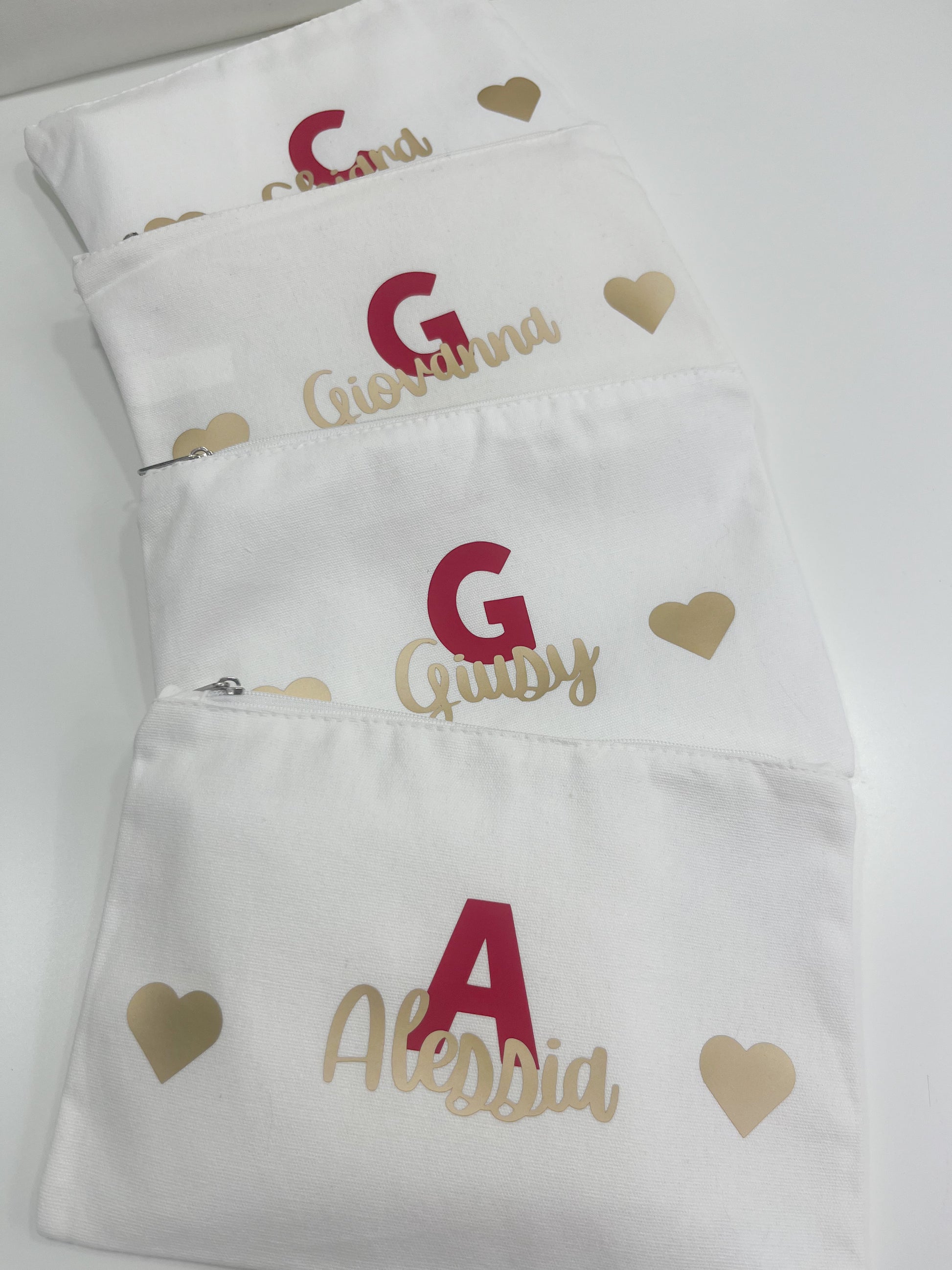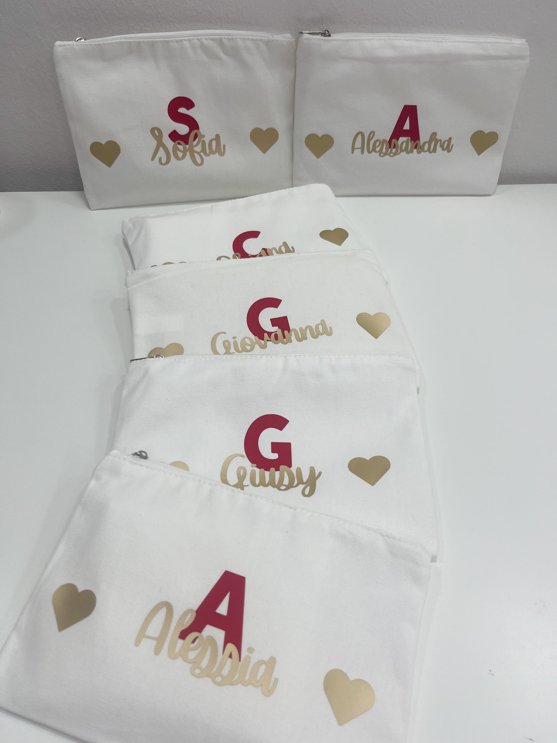 Pochette personalizzata in cotone con iniziale, nome e cuore
