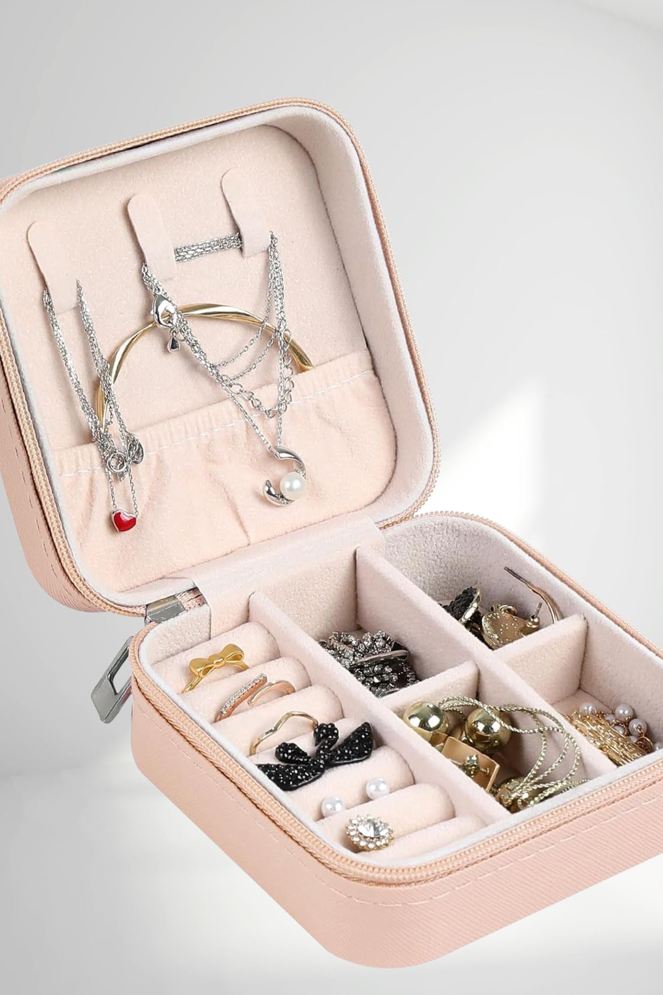 Il nostro portagioie da viaggio è progettato per tenere in ordine i tuoi accessori preferiti anche fuori casa.