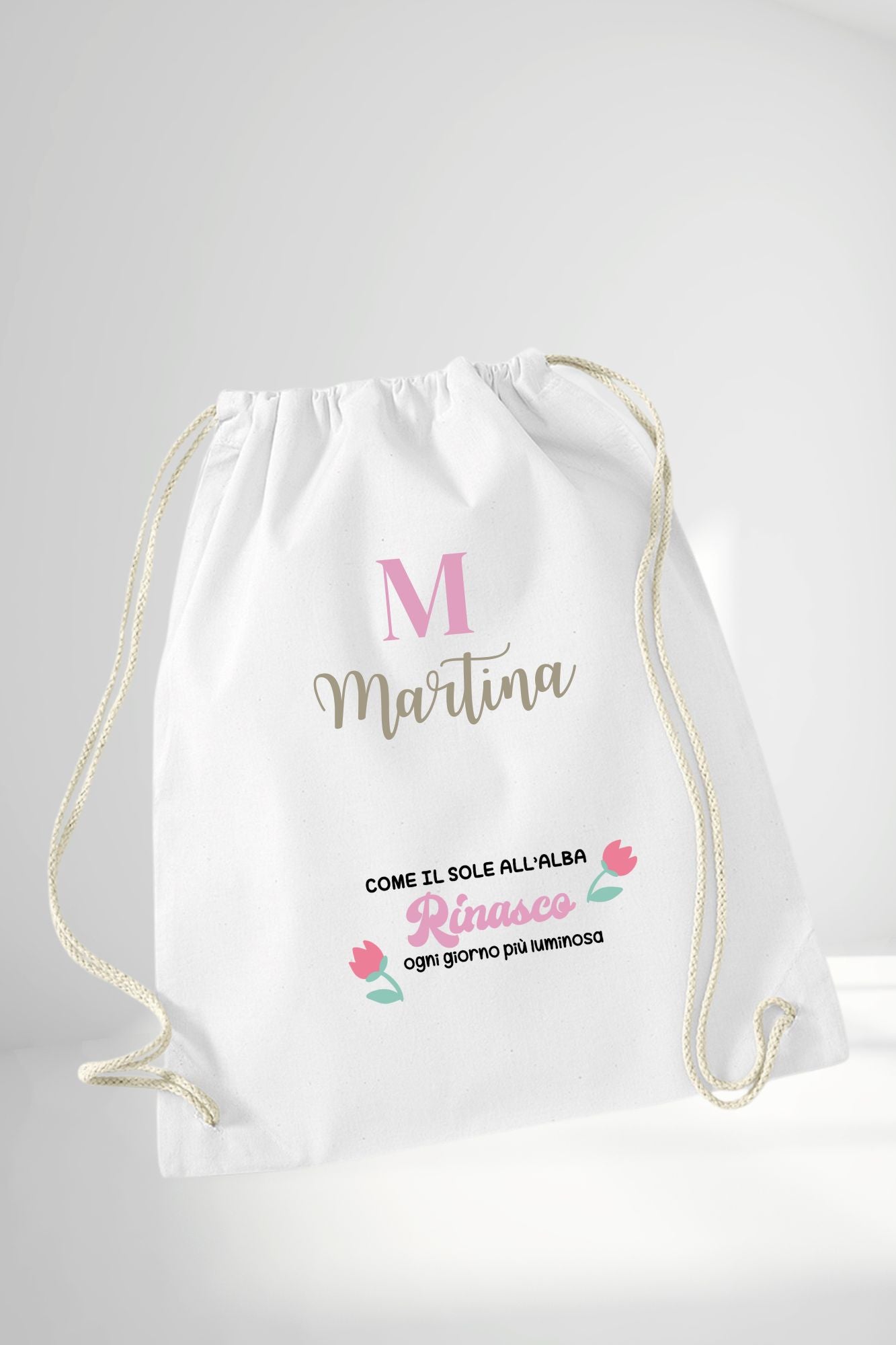 Acquistando la t shirt avrai in omaggio lo zaino in cotone personalizzato con frase e nome.